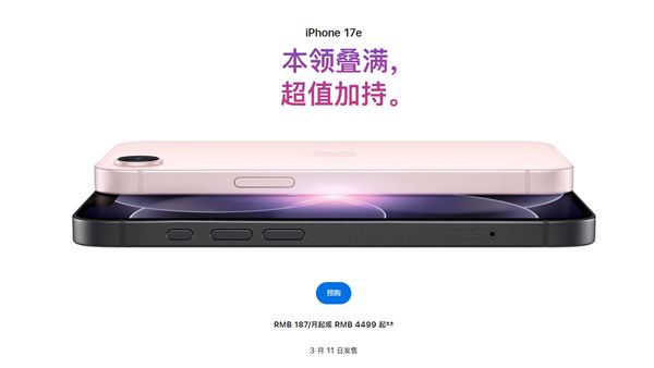 快科技3月11日消息,今日,iPhone 17e正式开售,提供256GB、512GB两种存储版本,售价